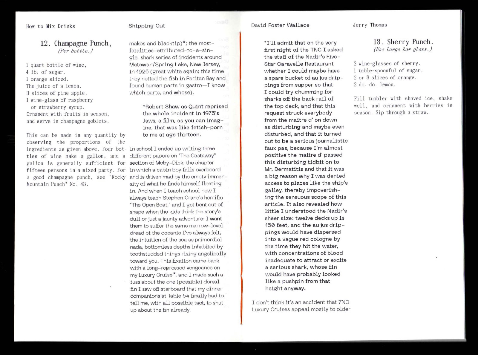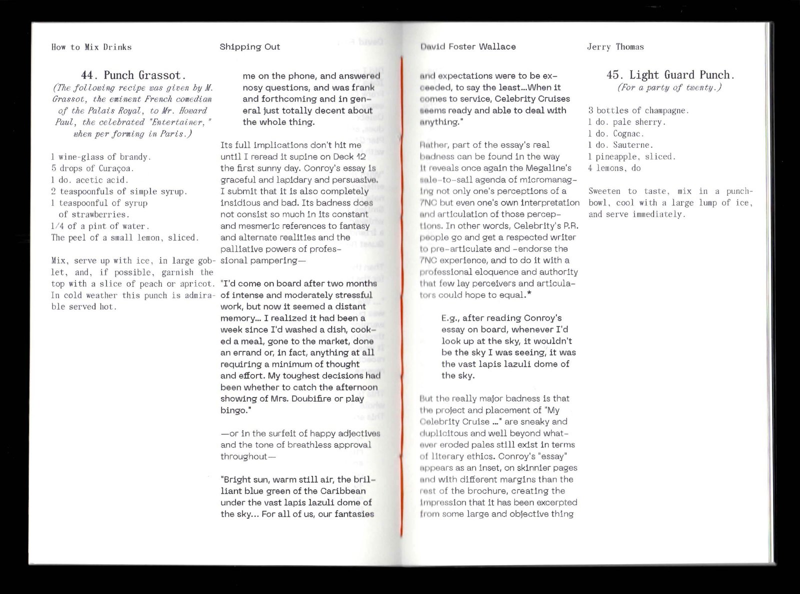 A publication that supplements Shipping Out, a short story by David Foster Wallace about manic experiences on a luxury ship